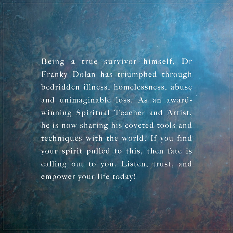 As an award-winning humanitarian artist and scholar attaining two doctoral degrees in Education and Psychology, Dr Franky Dolan created an art form of enhancing the mind and soul! As part of his transpersonal psychology research, he designed and conducted national studies and surveys, exploring how various healing arts affect mental health. His visionary art, storytelling, guided meditations and journal prompts were proven to uplift, inspire and actually heal mental health ailments.
